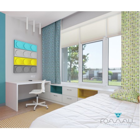 Miękkie panele block SM w kolorach zimnych zieleni są z wysokiej jakości pianki poliuretanowe pokrytej warstwą innowacyjnej miękkiej nylonowej powłoki w dotyku przypominającej aksamit, dzięki czemu panele utrzymują swoja miękką i elastyczną formę.